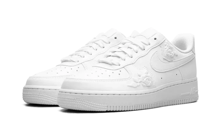 The Nike Air Force 1 '07 gets a romantic, elevated makeover in the "White Roses" colorway, a women's exclusive release that adds subtle, intricate detailing to the timeless all-white classic. Part of a themed pack, this shoe is an understated ode to elegance and romance.