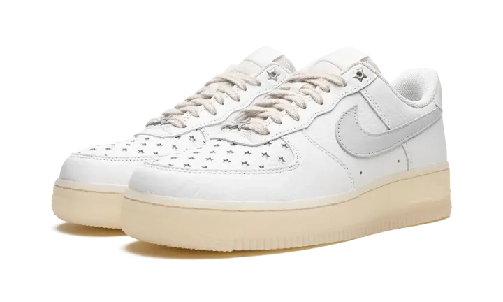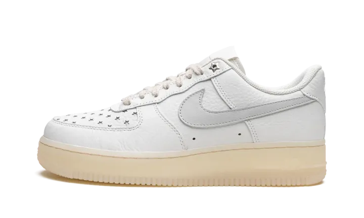 The Women's Nike Air Force 1 Low "Starry Night" is a women's-exclusive colorway of the retro basketball shoe with unique star detailing on its design. The "Starry Night" gives the Air Force 1 Low a new look with debossed stars on the toe box. The rest of the shoe is constructed in white leather with a Pure Platinum leather Swoosh on the sides. Classic "Nike Air" detailing is embroidered on the heel. Tonal "Air Force 1" insignia lands on the tongue tag. The shoe is complete with a semi-translucent cream sole.