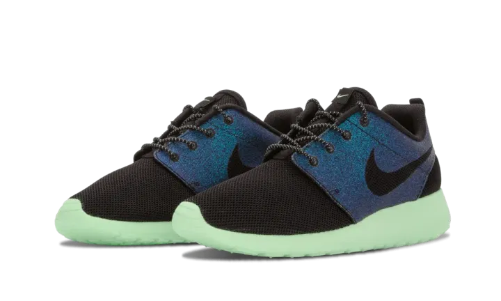 This special limited release of the Roshe Run was created for the Women's World Cup in 2015. Coinciding with the rest of the World Cup collection from Nike Sportswear, the shoe features a color-shifting glittered upper in blue and purple tones.
