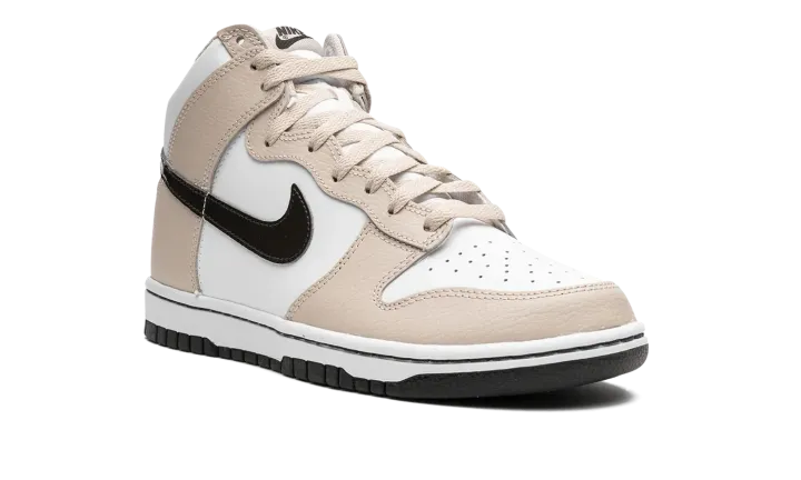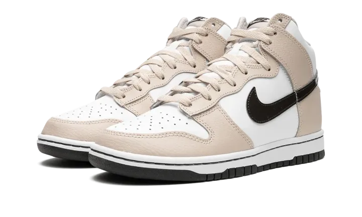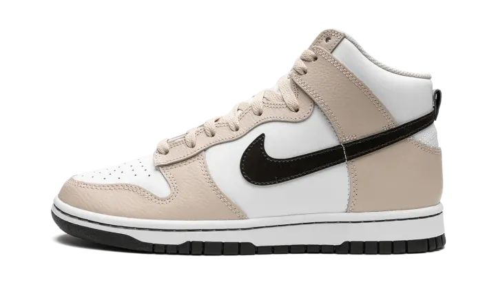 The Women's Nike Dunk High "Sanddrift" is a women's-exclusive colorway of the vintage basketball sneaker with a versatile appearance. The Dunk is one of Nike's most popular lifestyle shoes, and it's easy to see why on colorways such as the "Sanddrift." The go-anywhere shoe features a white leather base with tan leather overlays. A Velvet Brown Swoosh appears on the sides. "Nike" and Swoosh branding is found on the tongue tag. Underfoot, a white midsole and dark brown rubber outsole complete the look. Release date: February 10, 2023