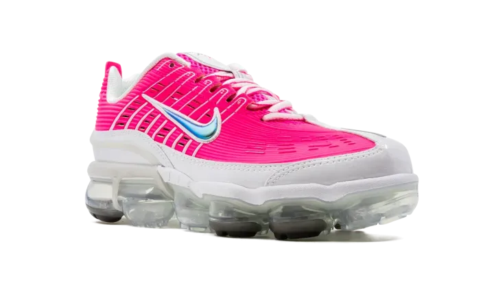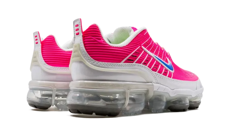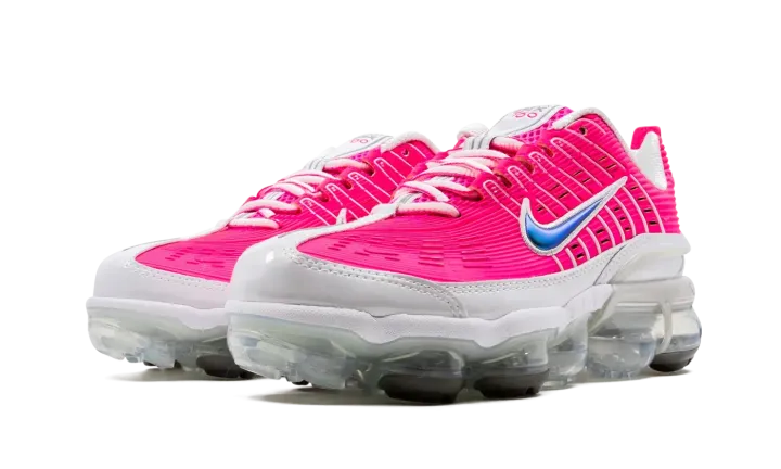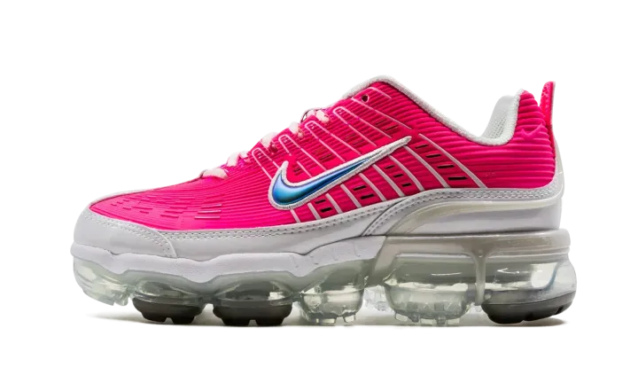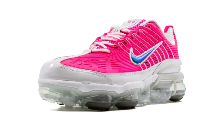 Hyper pink/pink blast/white Air VaporMax 360 "Hyper Pink" from NIKE featuring TPU upper, signature Swoosh logo detail, panelled design, round toe, front lace-up fastening and segmented rubber sole. These styles are supplied by a premium sneaker marketplace. Stocking only the most sought-after footwear, they source and curate some of the most hard to find sneakers from around the world..