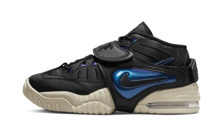 The Women's Nike Air Adjust Force "Vivid Purple" is a women's-exclusive colorway of the classic basketball shoe with a similar look to Ambush's collaboration on the model from 2022. The Air Adjust Force was originally released in 1996 before it came back as part of a collaboration with Yoon Ahn and Verbal's Ambush luxury jewelry brand in 2022. The "Vivid Purple" has a similar design to Ambush's spin on the old school sneaker. It features a black leather construction with a removable midfoot strap with "NIKE" branding that harkens back to mid-90s basketball shoe styling. A black leather Swoosh appears within the Vivid Purple overlay with a iridescent purple-to-blue design on either side of the shoe. Release date: April 27, 2023