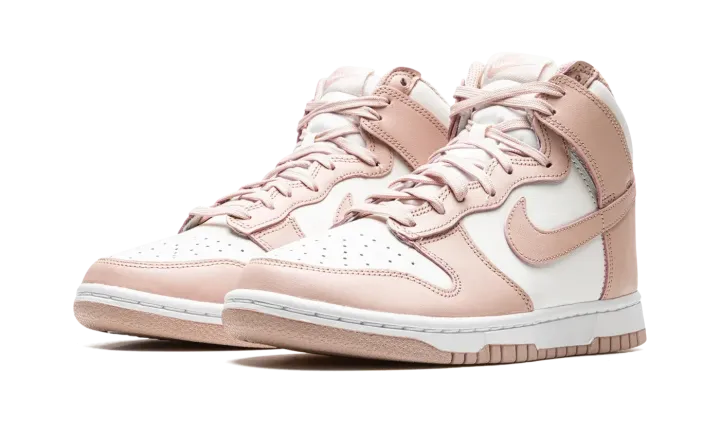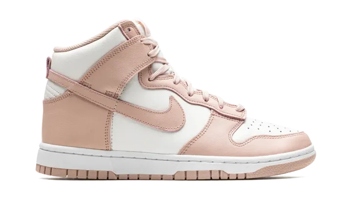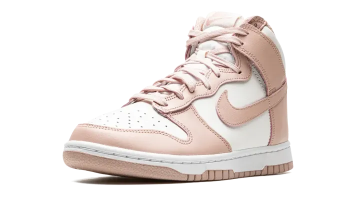 The Women's Nike Dunk High "Pink Oxford" is a women's-exclusive colorway of the vintage basketball shoe with a two-tone color block. The "Pink Oxford" is yet another versatile Dunk colorway, one that features a white leather base with contrasting Pink Oxford leather overlays and Swoosh branding. Classic "Nike" and Swoosh logos are designed in pink on the white nylon tongue tag on the tonal nylon tongue. The "Pink Oxford's" two-tone color scheme continues underfoot with a white rubber midsole and pink outsole. Release date: September 22, 2022