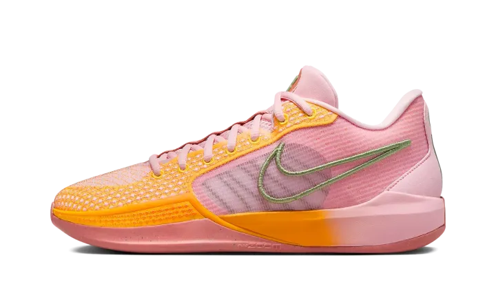 The Women's Nike Sabrina 1 "West Coast Roots" is a pink-based colorway of WNBA star Sabrina Ionescu's first signature shoe inspired by her California upbringing. The upper features pink mesh on the sides and a orange-and-pink mesh and textile on the toe and eyestay panel. An Oil Green outline Swoosh can be found on the lateral side and Ionescu's signature "S" branding appears on the tongue. Underfoot, Zoom Air cushioning in the forefoot of the Nike React midsole provides a responsive ride on or off the basketball court. Release date: December 6, 2023
