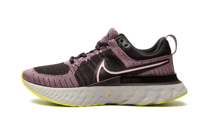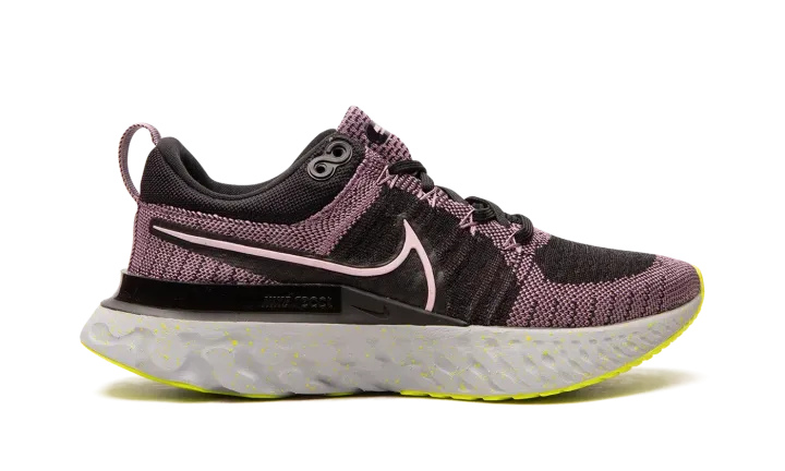 The Nike Reach Infinity Run Flyknit is a performance running shoe with a thick sole that takes the edge off of hard-surface running. And the greatest benefit of the Nike running shoe? Whether you're running or not, it can be an all-day option to wear. The advanced Flyknit upper has a snug, one-piece fit, ample arch support, and guide rails that add stability. A rocket-shaped React foam midsole provides an easy heel-to-toe transition, so the shoe is soft yet responsive underfoot. This colorway features two shades of gray, dusty pink, and bright yellow.