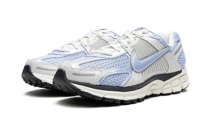 The Women's Nike Vomero 5 "Royal Tint" is a women's-exclusive colorway of the retro running shoe with a summertime vibe. The Vomero 5 was originally released in the early 2010s before returning to the scene as a lifestyle shoe. Here, the "Royal Tint" features an airy light blue mesh base with a mixture of tonal and grey leather overlays. A Royal Tint Swoosh appears on either side of the shoe. Other branding includes a "Nike Vomero 5" logo on the tongue. The shoe features Zoom Air cushioning within its Sail-colored foam midsole for all-day comfort. Release date: April 8, 2023
