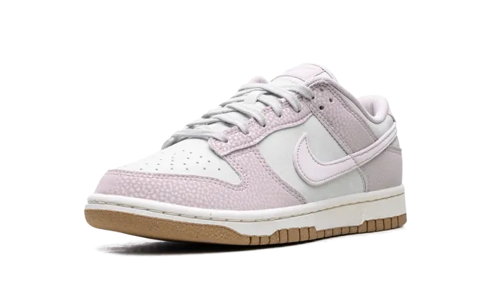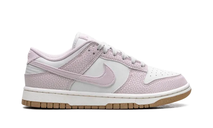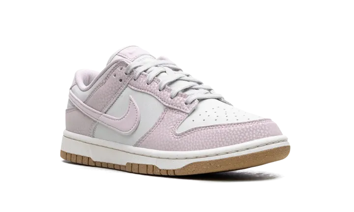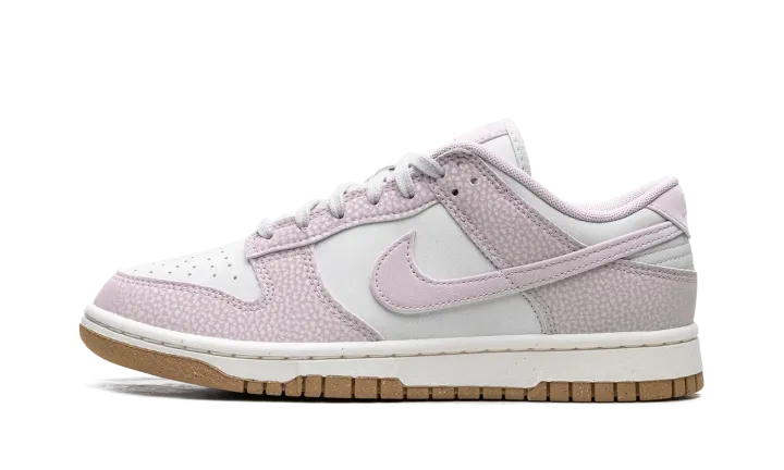 The Nike Dunk Low Next Nature "Platinum Violet" is a colorway of the retro shoe made from environmentally conscious materials. On the "Platinum Violet, the shoe's upper features a Light Bone leather base with Platinum Violet leather overlays and Swoosh branding. Classic "Nike" branding is embroidered on the heel. A "Nike" logo is paired with a Swoosh on the tongue tag. Underfoot, the outsole is constructed of recycled Nike Grind material. Release date: Spring 2024