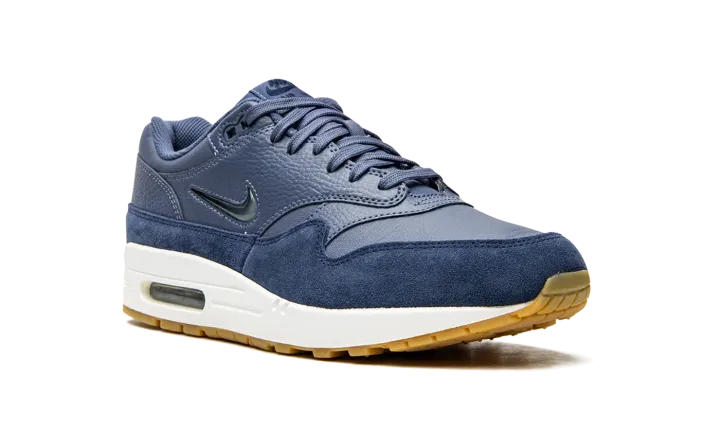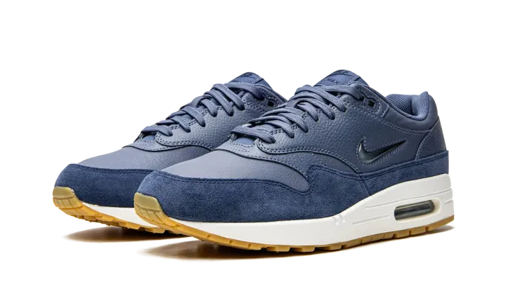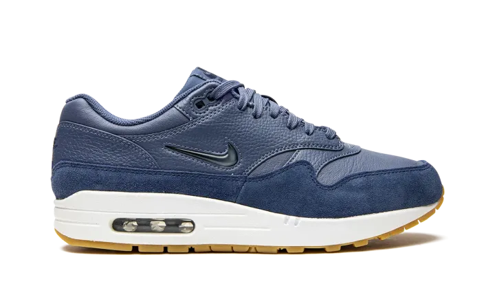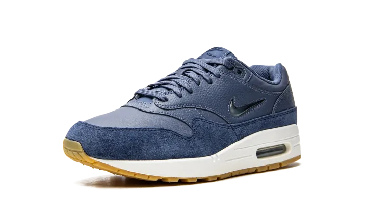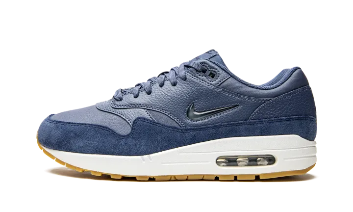 The Women's Nike Air Max 1 "Jeweled Swoosh - Diffused Blue" is a women's colorway of the popular retro performance running shoe that is designed in a monochromatic blue look. A premium version of the original Air Max shoe, the "Jeweled Swoosh - Diffused Blue" colorway features several modifications from the original design, including Diffused Blue pebbled leather on the mid-panel and heel. The plush suede mudguard is also designed in the same Diffused Blue hue. A mini jeweled Swoosh is found on either side, a look that was popularized on the Nike Air Force 1 Mid in the mid-to-late '90s. Throwback "Nike Air Max 1" insignia is found on the blue tongue tag. Diffused Blue-colored laces sit atop the tonal nylon tongue. On the back, old school "Nike Air" and Swoosh branding is embroidered in blue. A small visible Air unit appears in the heel of the white midsole. To complete the look, Nike mates the design with a gum rubber outsole. Release date: March 16, 2018