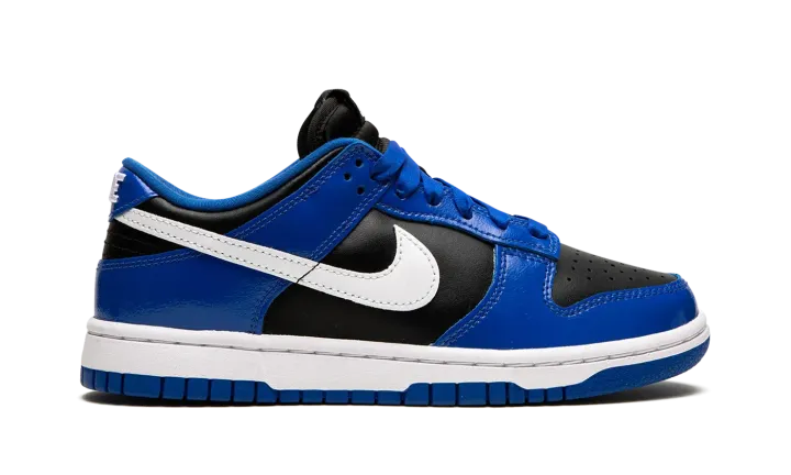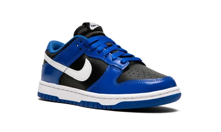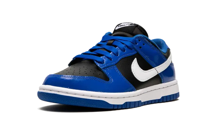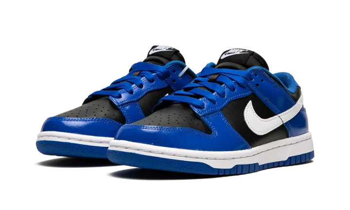 The Women's Nike Dunk Low "Game Royal" is a women's-exclusive colorway of the popular shoe with a can't-miss appearance. The "Game Royal" features a back leather base with contrasting Game Royal leather panels on the toe, forefoot, eyelets, collar, and heel. A white leather Swoosh logo can be found on either side of the shoe. "Nike" branding is embroidered on the heel and printed on the tongue tag. Underfoot, a white midsole and Game Royal rubber outsole complete the look.