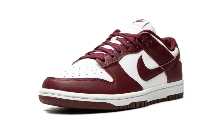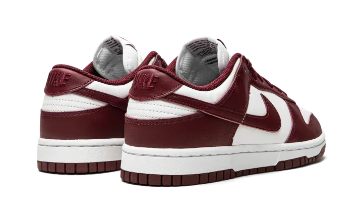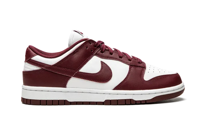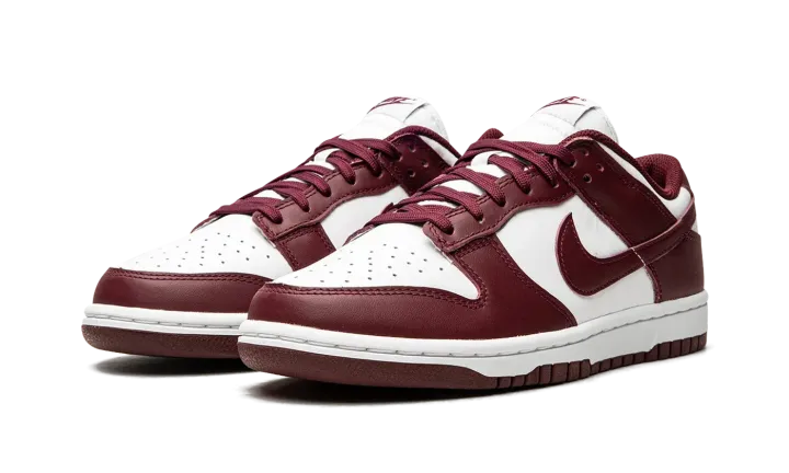 The Women's Nike Dunk Low "Dark Beetroot" is a women's exclusive release of the retro basketball shoe in a two-tone, white-and-maroon style. An October 2021 colorway, the "Dark Beetroot" is one of multiple easy-wearing Dunks to release in women's sizing in 2021. White leather appears on the perforated toe, mid-panel, collar, and heel. The overlays and Swoosh are constructed in Dark Beetroot-colored leather. A tonal "Nike" logo is embroidered on the heel and maroon "Nike" and Swoosh branding is found on the tongue tag. The two-tone look is rounded into form with Dark Beetroot laces, a white nylon tongue, and a white midsole and maroon outsole. Release date: October 1, 2021