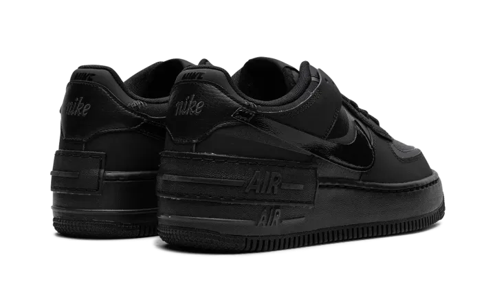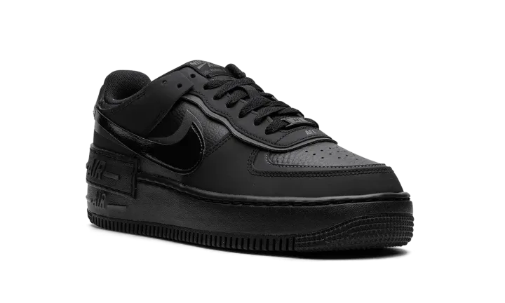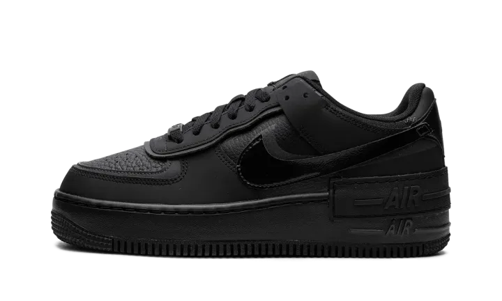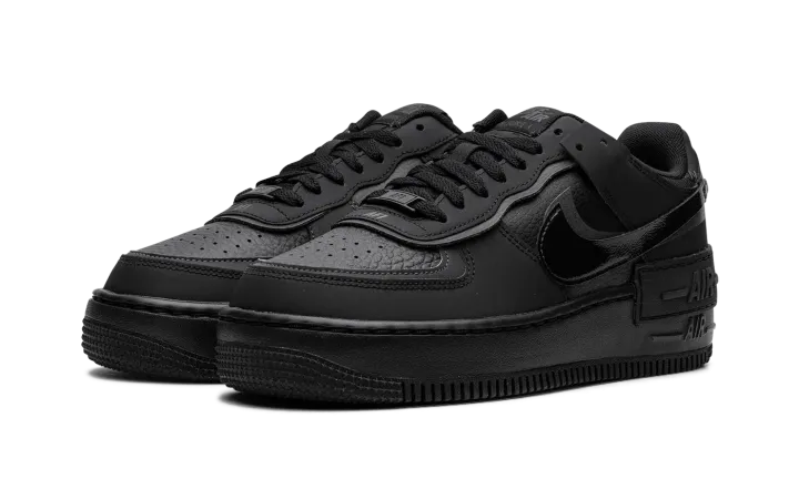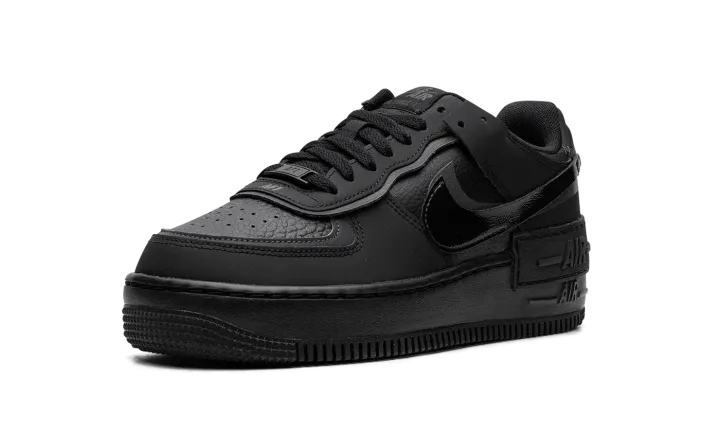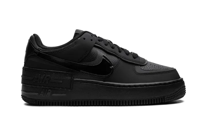 The Women's Nike Air Force 1 Shadow "Triple Black" is a women's-exclusive colorway of the version of the retro basketball sneaker with a modern update. Designed with dual layered panels, the Air Force 1 Shadow is a contemporary spin on the classic sneaker. Here, the "Triple Black" features a monochromatic black appearance. More specifically, the shoe has a black tumbled leather base with black synthetic layered overlays and Swooshes. An extra "Air" panel appears above the midsole. Release date: September 18, 2023
