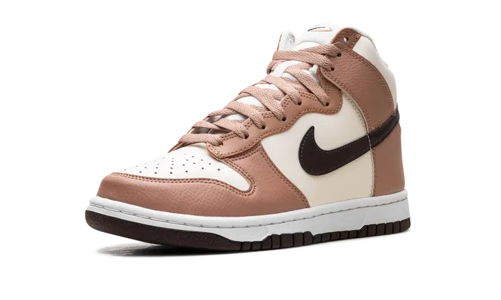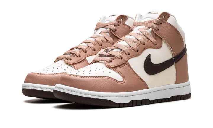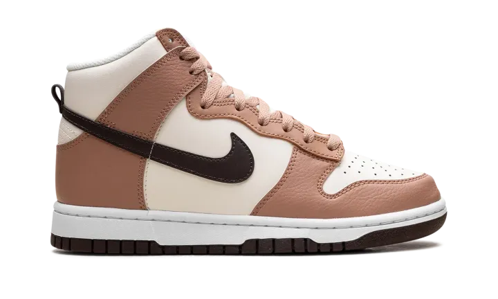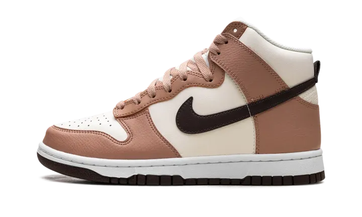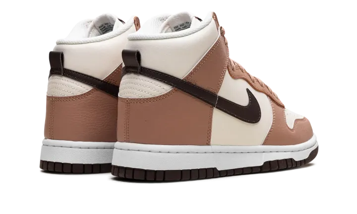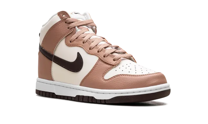 The Women's Nike Dunk High "Dusted Clay" is a women's-exclusive colorway of the classic basketball shoe with a fall-ready look. Nicknamed "Dusted Clay," this version of the Dunk High in women's sizing features a Pale Ivory leather base with Dusted Clay leather overlays. A brown leather Swoosh logo is seen on both sides of the shoe. A chenille patch with a small Swoosh logo appears on the tongue. The white rubber midsole and Dusted Clay rubber outsole put the finishing touches on the clean design. Release date: November 4, 2023