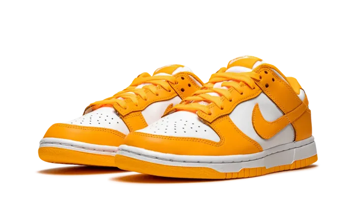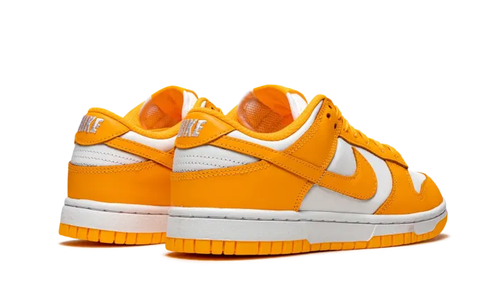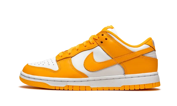 The Women's Nike Dunk Low "Laser Orange" is a head-turning colorway of the venerable low-top shoe for women. Reminiscent of the model's original "Syracuse" colorway from the college basketball inspired "Be True to Your School" pack from 1985, the "Laser Orange" is cast in the same two-tone, white-and-orange color block, though in a noticeably lighter shade of orange. Like the "Syracuse" Dunk, white leather forms the base. The eyelets, forefoot, collar, heel, and Swoosh feature a Laser Orange leather construction. White "Nike" embroidery appears on the heel and white "Nike" branding with a Swoosh on the orange nylon tongue tag. Additional details include a white nylon tongue and a Laser Orange liner and shoelaces. Release date: Spring 2021.