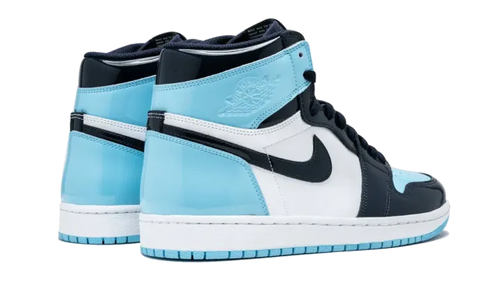 The women's Air Jordan 1 High "UNC Patent Leather" is another appealing look for the women's collection of Michael Jordan's first signature shoe. The colorway is inspired by Jordan's college career at the University of North Carolina, and the striking women's Jordan 1 features a full patent leather build that shines in tones of Blue Chill, Obsidian, and white across the upper with more of the Carolina blue tone for the outsole. It also features the Air Jordan wings logo embossed onto the ankle for an even cleaner look to the glossy colorway. The women's Air Jordan 1 High "UNC Patent Leather" released in February 2019.