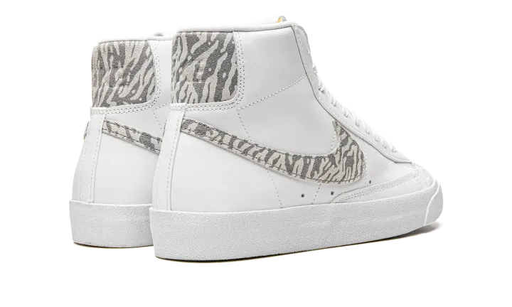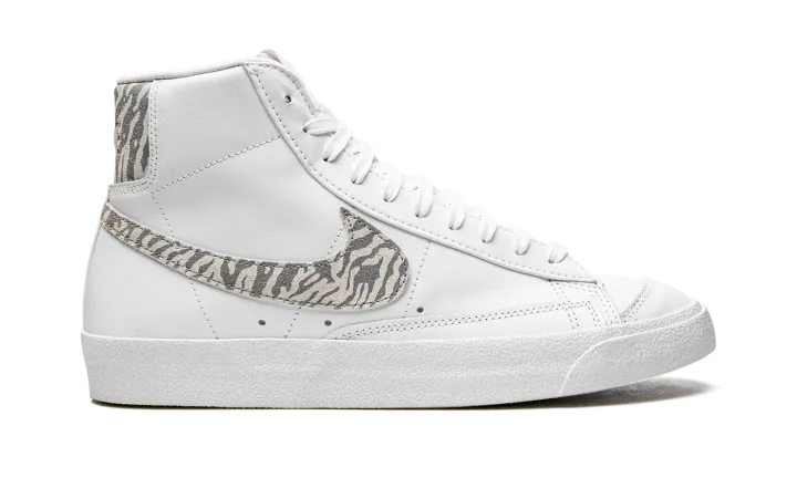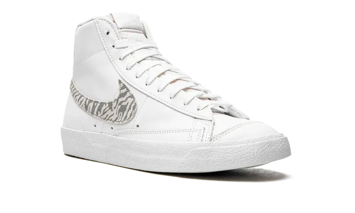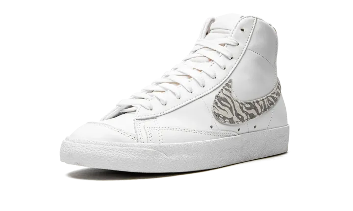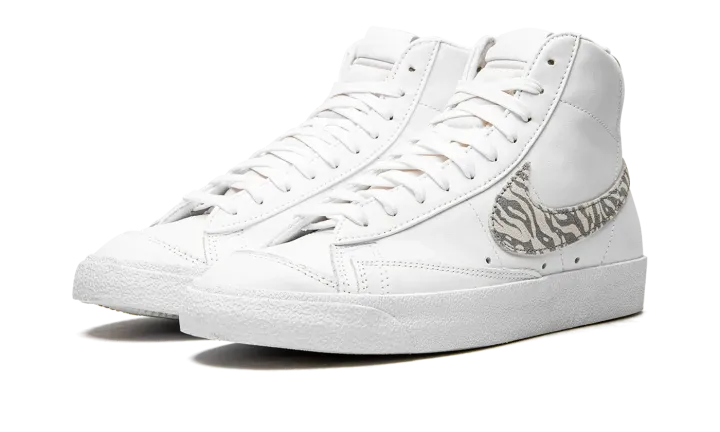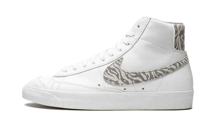 The Women's Nike Blazer Mid '77 "Zebra" is a women's-exclusive colorway of the retro basketball and lifestyle shoe with eye-catching animal-inspired accenting. Part of Nike's Fall 2021 collection, the "Zebra" Blazer Mid '77 is both versatile and bold with its crisp white leather upper and zebra-patterned Swoosh branding on either side. Additional zebra print comes into play on the heel tab where a classic "Nike" logo resides. Tonal "Nike Blazer" branding is located on the tongue tag of the white nylon tongue. Other details include white laces, white leather eyelet panels, and a vulcanized white rubber sole. Release date: October 11, 2021