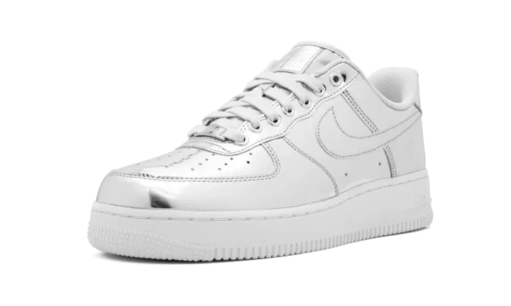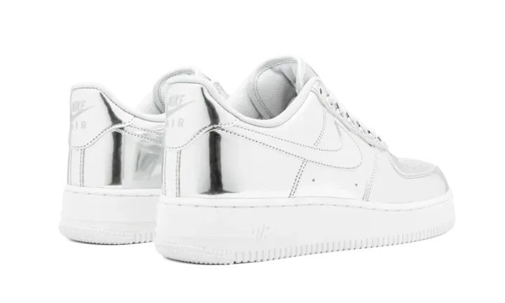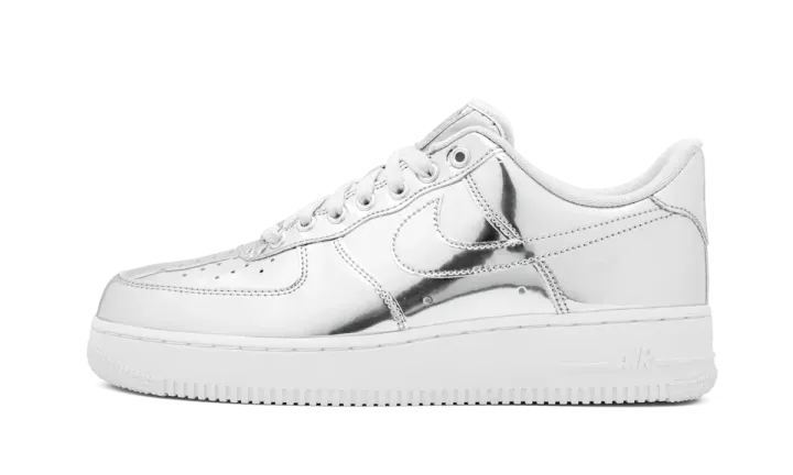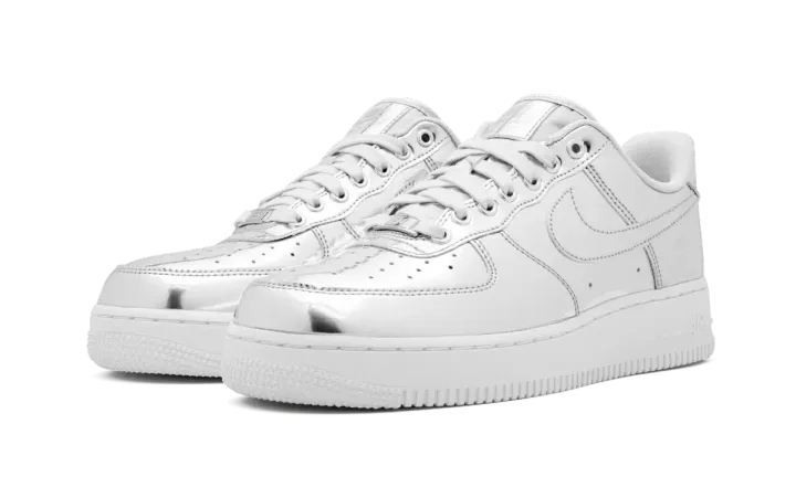 The Women's Nike Air Force 1 Low "Metallic Chrome" is a premium take on one of Nike's most essential lifestyle silhouettes. Outfitted with a shining Metallic Chrome leather finish across the upper, the design features all of the iconic Air Force 1 styling including a perforated toe and signature Air Force 1 branding on the tongue and heel. The Air Force 1's classic rubber midsole in white with classic "Air" branding on the heel completes the look. The "Metallic Chrome" Air force 1 low for women released in December 2019.
