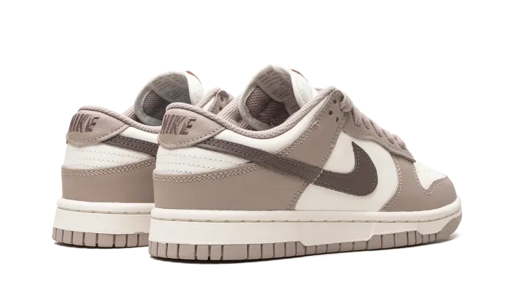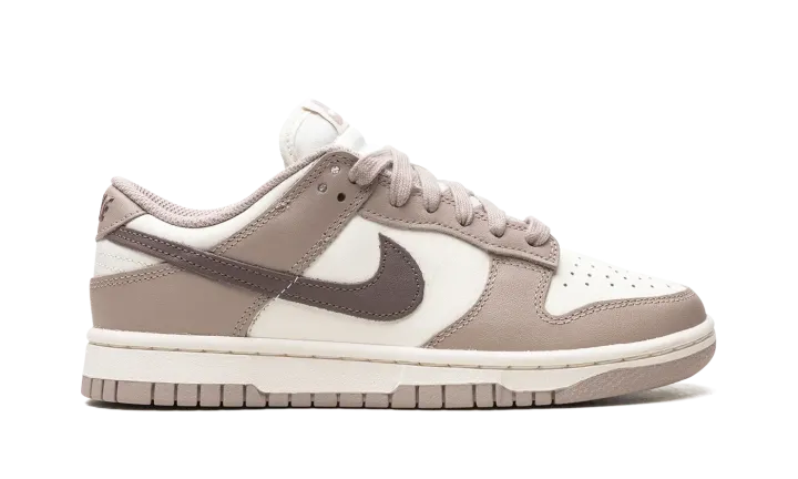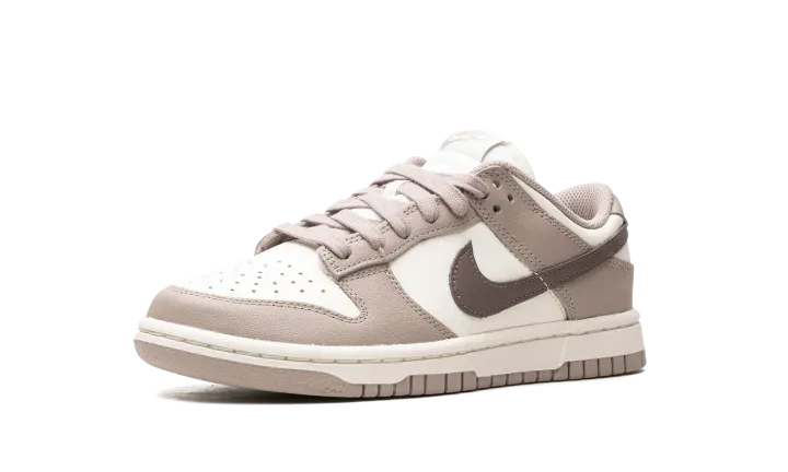 The Women's Nike Dunk Low "Diffused Taupe" is a women's-exclusive colorway of the retro basketball and lifestyle shoe with an easy-to-style appearance. The upper has a Sail leather base with Diffused Taupe leather overlays and a Plum Eclipse leather Swoosh. Other branding elements include an embroidered "Nike" logo on the heel and printed "Nike" and Swoosh logos on the tongue tag. Underfoot, the shoe's white midsole and taupe-colored outsole complete the look. Release date: August 26, 2023