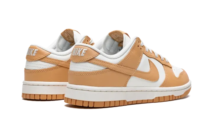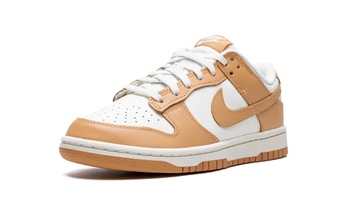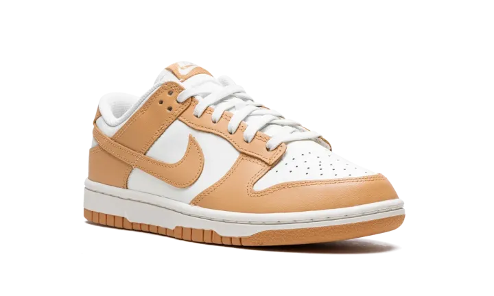 The Women's Nike Dunk Low "Harvest Moon" is a women's-only version of the vintage basketball and lifestyle shoe in an earth tone colorway. A January 2022 release, the "Harvest Moon" is a versatile color option for the Dunk sneaker that features a white leather base with contrasting Harvest Moon-colored leather overlays. The Swoosh branding that appears on either side of the shoe is designed in light brown to match the aforementioned panels, as is the leather heel tab with "Nike" branding. The Harvest Moon nylon tongue tag features white "Nike" and Swoosh branding. A two-tone, white midsole and light brown rubber outsole round out the look. Release date: February 2, 2022