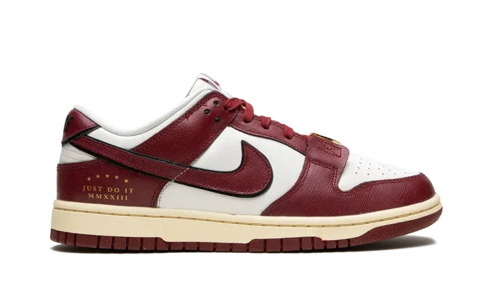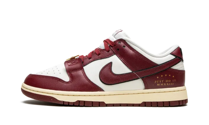 The Women's Nike Dunk Low "Just Do It - Team Red" is a women's-exclusive colorway of the vintage basketball shoe that celebrates Nike's famous slogan. As one could imagine by its nickname, this colorway theme nods to Nike's "Just Do It" catchphrase as it is stamped on the lateral side of the heel. "Just Do It" reappears on the footbed, as well. As for the rest of the shoe's design, the upper features a textured white leather base with Team Red overlays and Swoosh branding. Classic "Nike" detailing is found on the tongue tag. A gold lace medallion on each shoe with engraved "Nike" branding completes the look. Release date: February 23, 2023