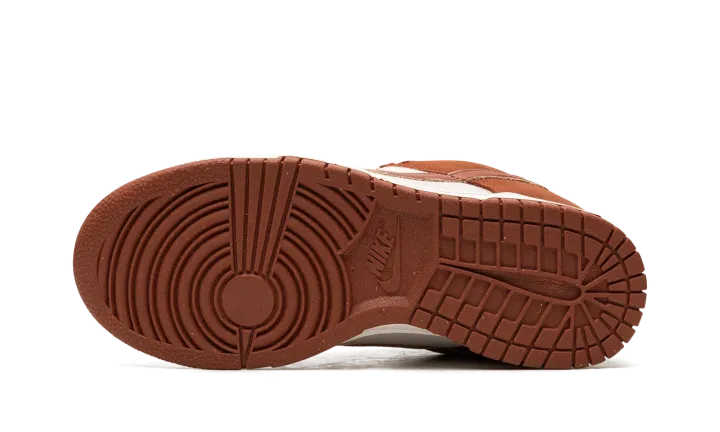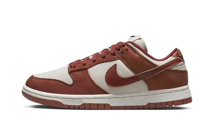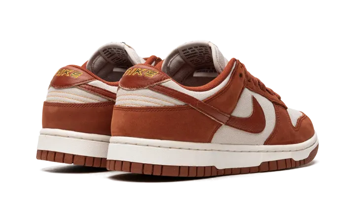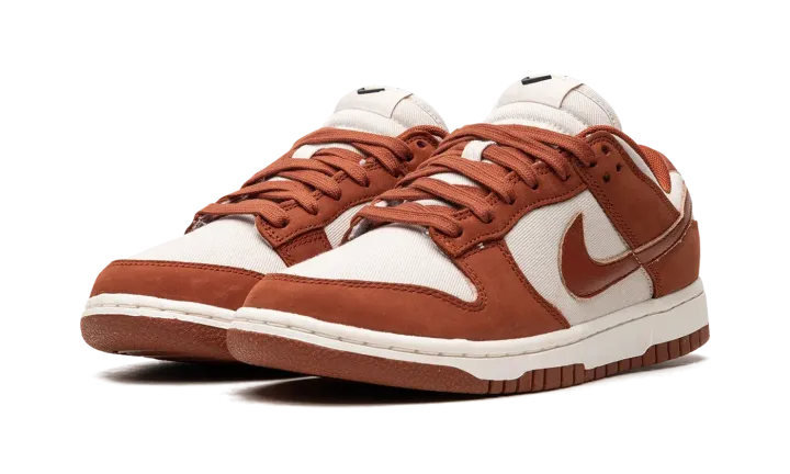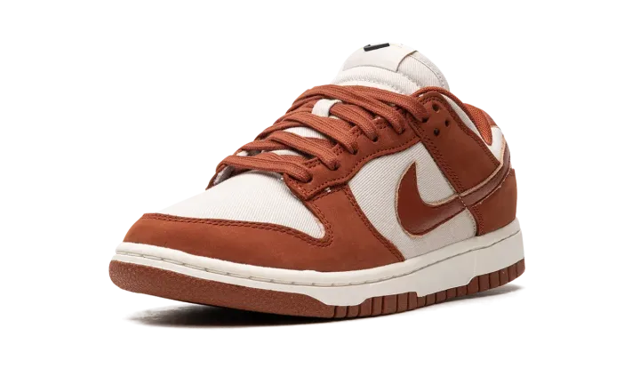 The Women's Nike Dunk Low LX "Rugged Orange" is a women's-exclusive colorway of the retro basketball and lifestyle shoe with a casual vibe. The "Rugged Orange" Dunk Low LX features a Light Orewood Brown or off-white-colored canvas base with Rugged Orange leather overlays and Swoosh branding. A "Nike" logo is embroidered on the heel and printed on the tongue tag. A cream rubber midsole and burnt orange outsole complete the look. Release date: July 12, 2023