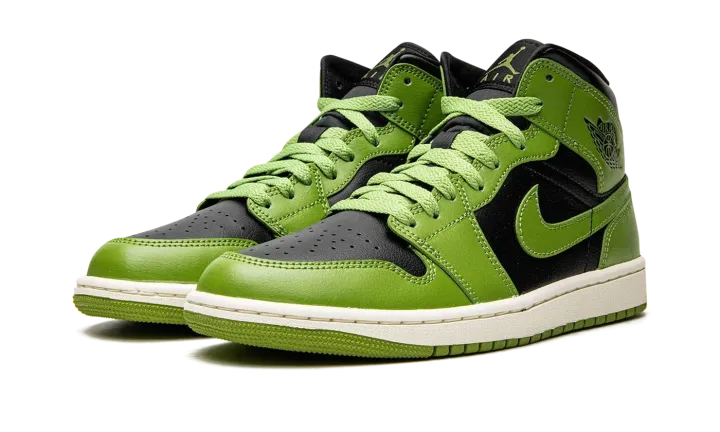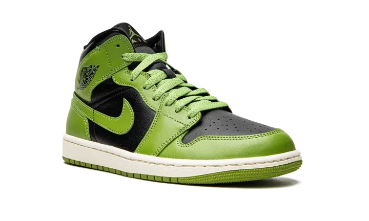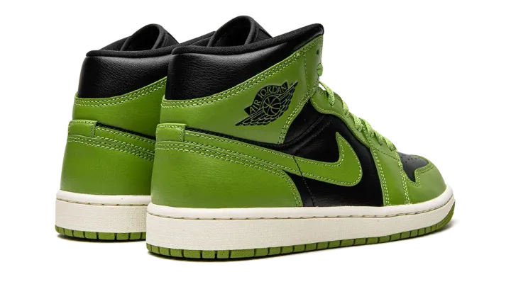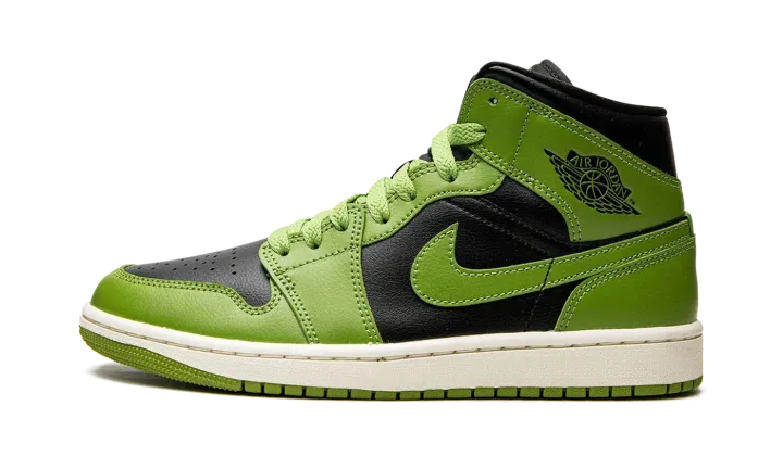 The Women's Air Jordan 1 Mid "Altitude Green" is a women's-exclusive colorway of the popular lifestyle shoe with an eye-catching black and green color block. The "Altitude Green" Jordan 1 Mid features a black leather base with Altitude Green leather overlays and Swoosh branding. A black "Wings" logo can be found on the shoe's collar and "Nike Air" and Swoosh insignias are located on the tongue tag. Additional design elements include green laces, a white midsole, and an Altitude Green rubber outsole. Release date: November 15, 2022
