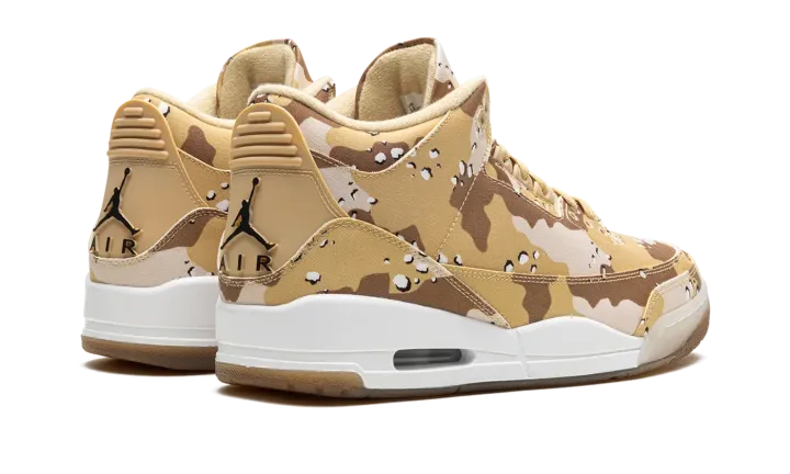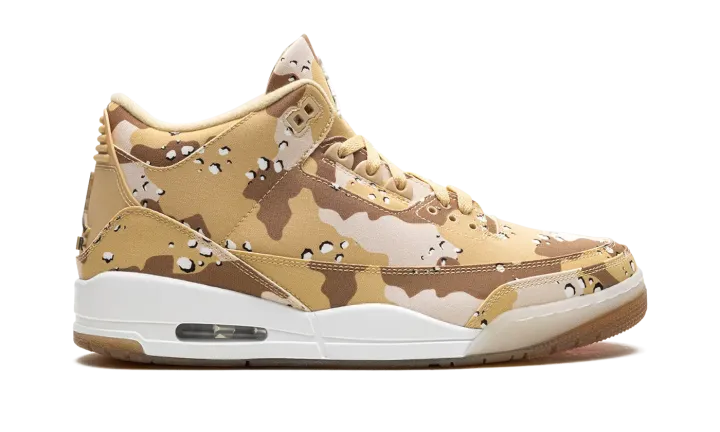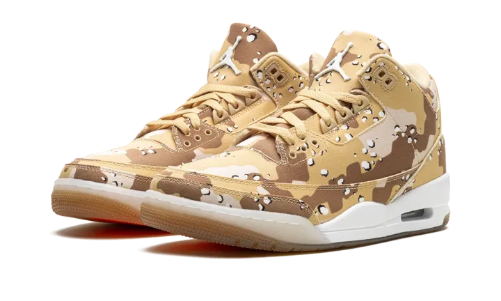 Step into a distinct look with the Air Jordan 3 Wmns "Desert Camo". This celebrated women's sneaker features a bold desert camouflage pattern on the upper, contrasted with premium leather accents. Enjoy comfortable Air cushioning and a versatile style, perfect for making a powerful statement with a sophisticated, military-inspired edge.