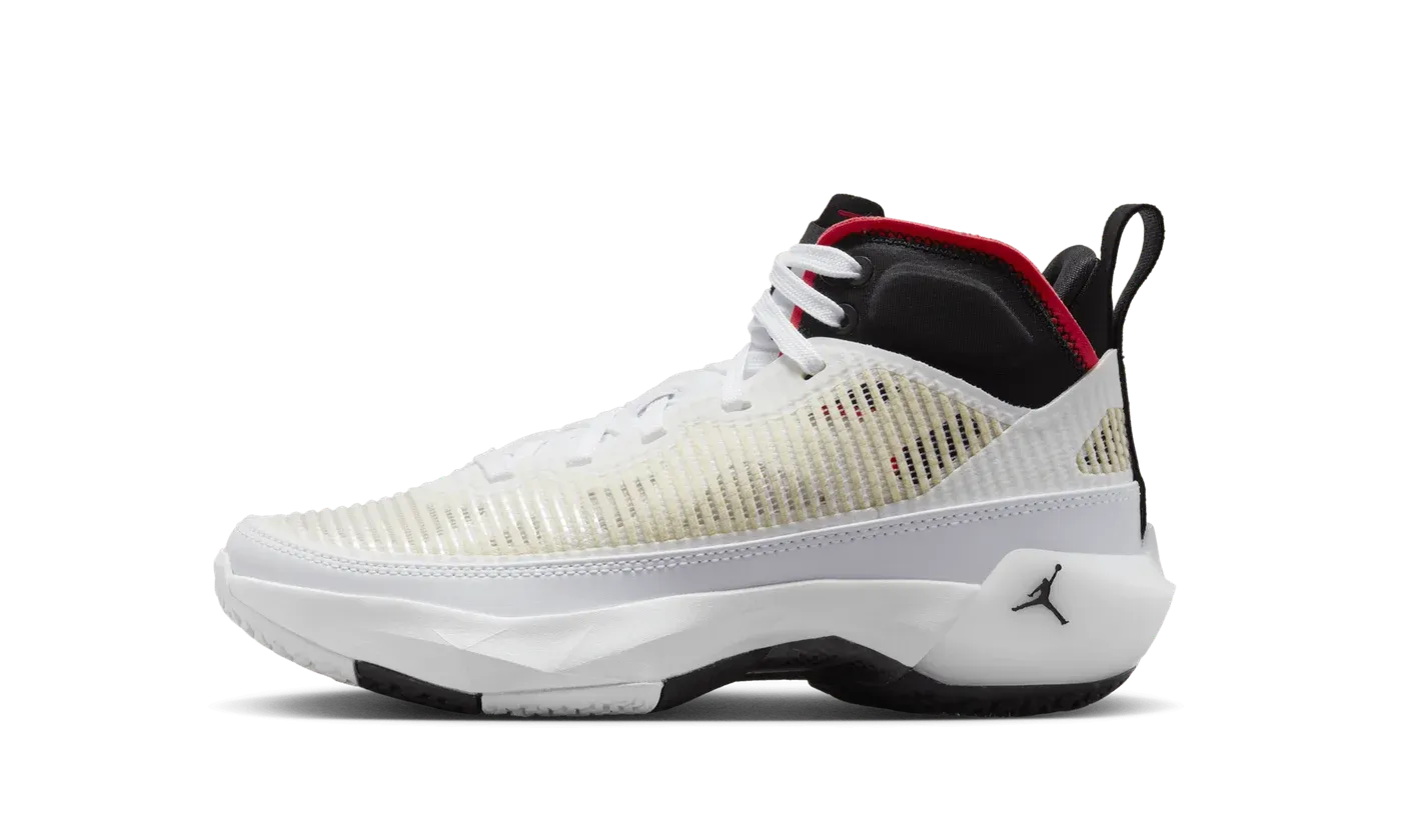 Experience explosive performance with the Air Jordan 37 GS "Siren Red". Designed for the court, this Grade School sneaker is built with lightweight, breathable leno-weave material and draws design inspiration from the classic AJ 7. The vibrant "Siren Red" accents pop against the white and black upper. Featuring responsive cushioning with Zoom Air technology and Formula 23 foam, the Air Jordan 37 delivers the stability and bounce young athletes need to push their game to the next level.