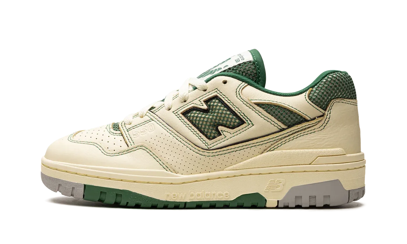 Introducing the Aimé Leon Dore x New Balance 550 Masaryk Community Gym - Green BB550AY1, a stylish collaboration between two iconic brands.