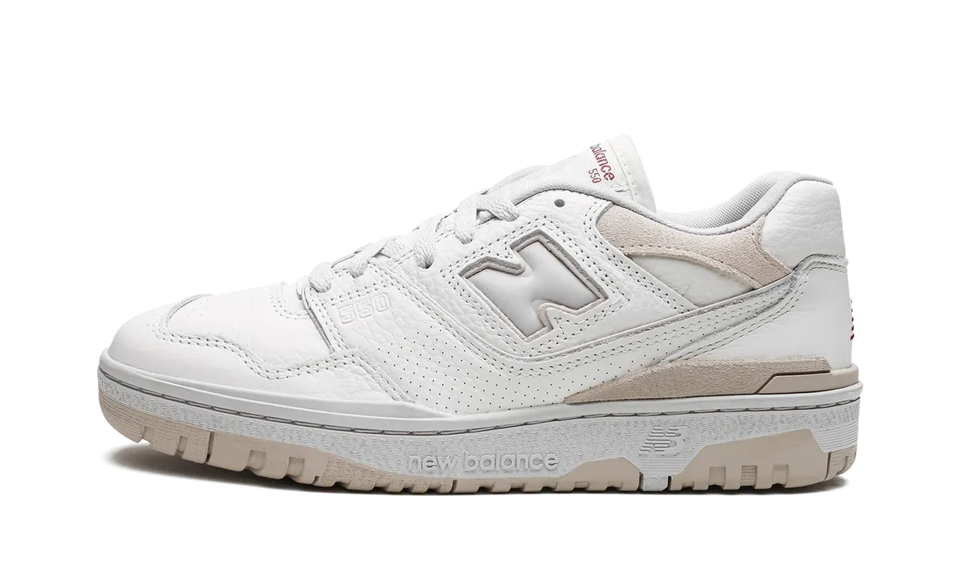 The New Balance 550 "Lunar New Year" is a special colorway of the retro basketball shoe that celebrates the traditional Chinese holiday. The "Lunar New Year" edition of the New Balance 550 opts for a minimalist look with its white leather construction and tan overlays. A tonal "N" logo appears on the sides and maroon "NB" branding lands on the heel and tongue tag. The shoe's chunky rubber midsole appears in grey and is paired with a tan outsole.