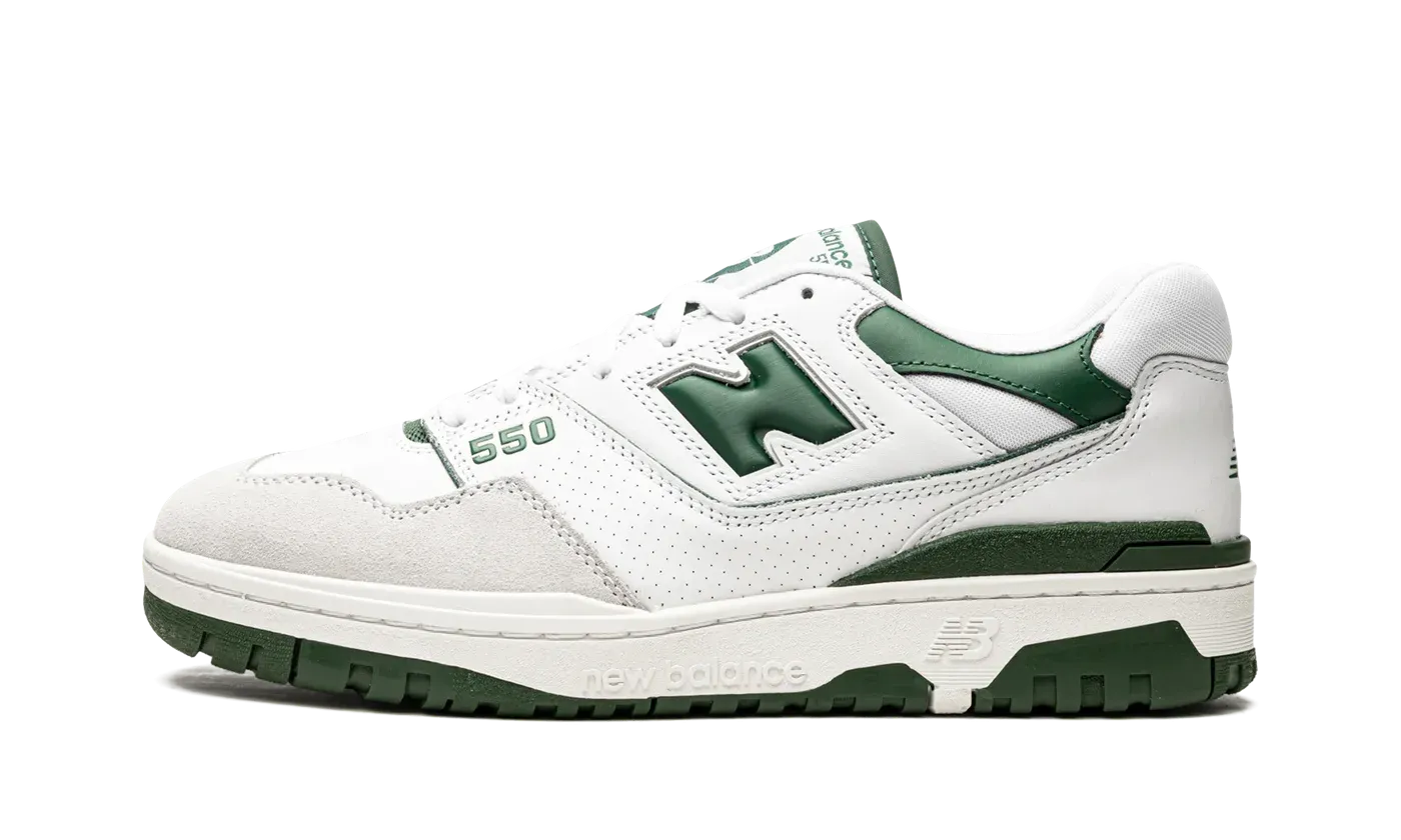 Introducing the New Balance 550 White/Green sneakers for men, a classic basketball shoe with a retro-inspired design.