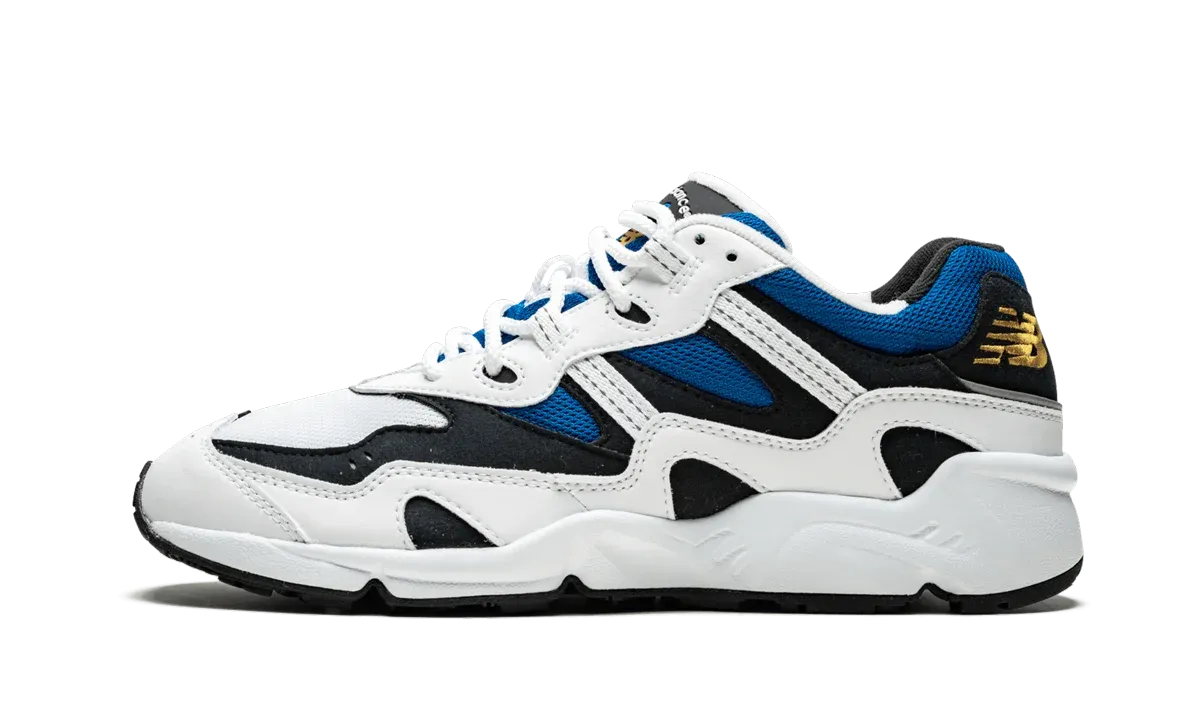 The New Balance 850 "White/Black/Blue" is an original colorway of the Stephanie Howard-design shoe that was first released in 1996. The upper part of the New Balance 850 consists of a mix of black, blue, and white leather panels and overlays. Void of any midsole branding, an uncommon trait for New Balance designs, this 850 instead laces the lateral heel and tongue with gold embroidery. A customary midsole with a black rubber outsole provides the familiar comfort New Balance is known for. The New Balance 850 initially released in limited quantities at Aime Leon Dore's Mulberry Street storefront, and a wider release followed online on June 28th, 2019.
