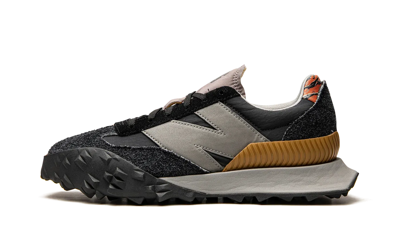 The New Balance XC-72 "Year of the Tiger" is a colorway of the retro-modern lifestyle shoe inspired by 1970s concept cars that honors the traditional holiday. From New Balance's "Lunar New Year" collection from 2022, the XC-72 features a split-color, nylon upper in black and brown. Black suede overlays appear on the toe, forefoot, and eyelets. An oversized leather "N" logo appears on either side of the shoe. The colorway salutes The Year of the Tiger with tiger stripe detailing on the heel. A black "NB" graphic is found on the top of the tongue. Underfoot, a black rubber sole with treading that extends to the front of the toe gives the shoe an aggressive, contemporary-yet-retro appearance.