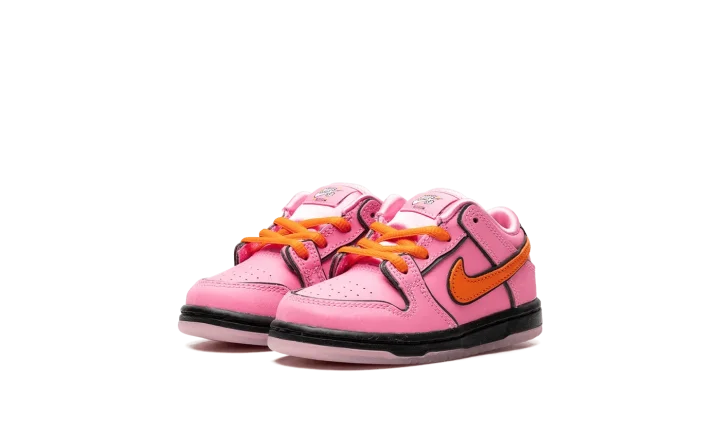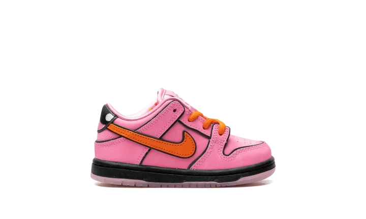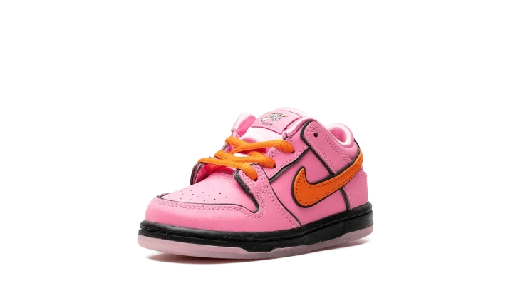 The Powerpuff Girls x Nike SB Dunk Low TD "Blossom" is the toddler sizing of the collaboration by the animated cartoon series that shows love to one of the show's main characters. This unique collaboration between the Powerpuff Girls cartoon and Nike SB for the SB Dunk is inspired by Blossom, one of the series' three main characters. The shoe features a pink upper that is inspired by Blossom's pink outfit. The bright orange Swoosh and laces are inspired by her hair. The character's big eyes are embroidered on the back of the shoe. A reflective finish is applied to the shoe's upper while "Powerpuff Girls" logo branding is designed in a repeating pattern on the tongue. Release date: December 14, 2023