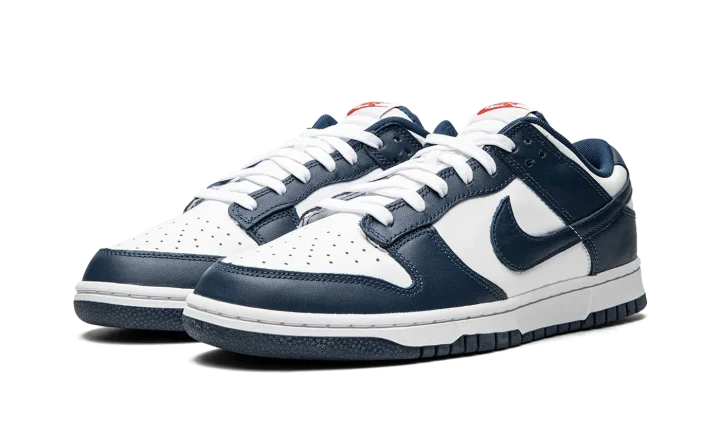 The Nike Dunk Low "USA" is a May 2022 release of the patriotic sneaker in a classic colorway and all-leather construction. The "USA" celebrates major holidays that are observed by the US during the spring and summer. This design features Valerian Blue overlays that are contrasted with a white leather base on the mid-panel, toe, and heel. Blue Swooshes cover the mid-panels and pops of red appear on the tongue and heel logo to complete the design. Release Date: June 16, 2022