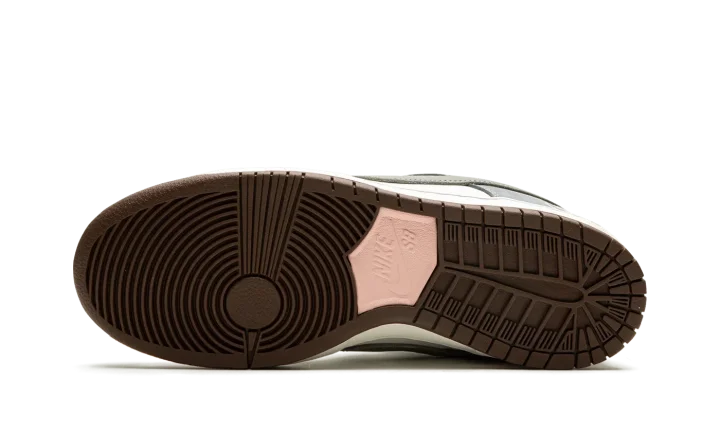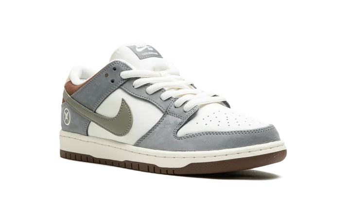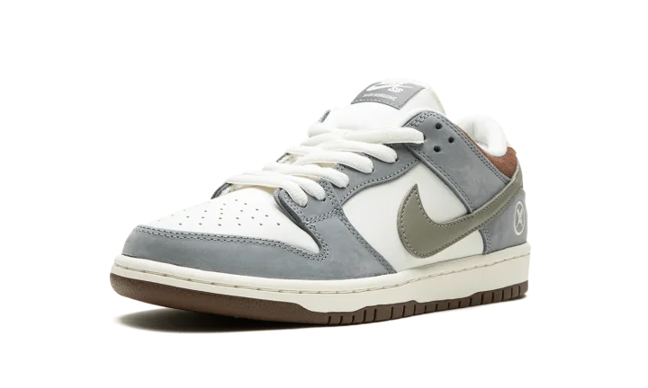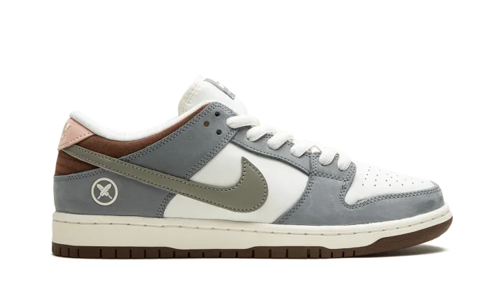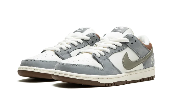 The Yuto Horigome x Nike SB Dunk Low "Wolf Grey/Iron Grey" is a collaboration between the Japanese professional skateboarder and Nike SB on the classic skate shoe. Yuto, who won the first-ever Olympic men's street event at the 2020 Summer Olympics, teams up with Nike SB to create a clean colorway of the Dunk Low. The shoe has a white leather base with grey nubuck leather overlays. A Chocolate Brown suede overlay appears on the collar while pink leather is seen on the heel tab with "Nike" branding. A cross-feather logo is seen on the lateral side of the heel. Nike SB and "Yuto" detailing are found on the tongue tag. A Sail rubber midsole and brown rubber outsole finish off the look. Release date: August 16, 2023
