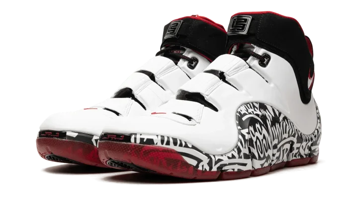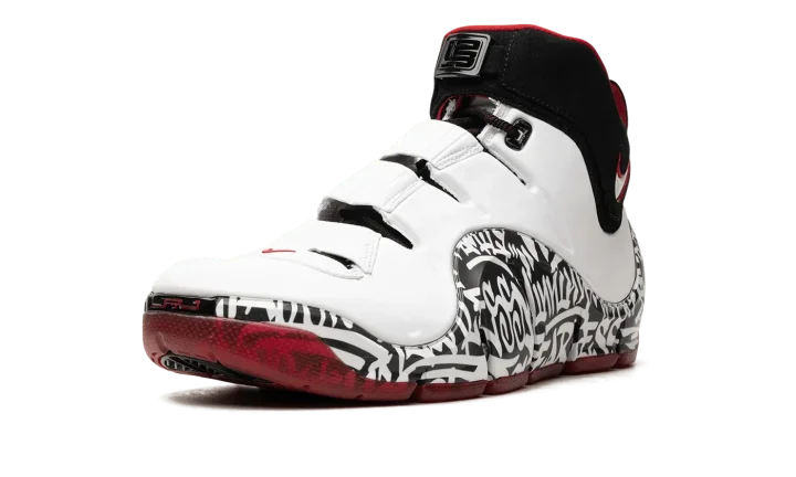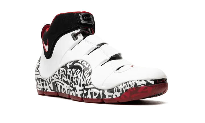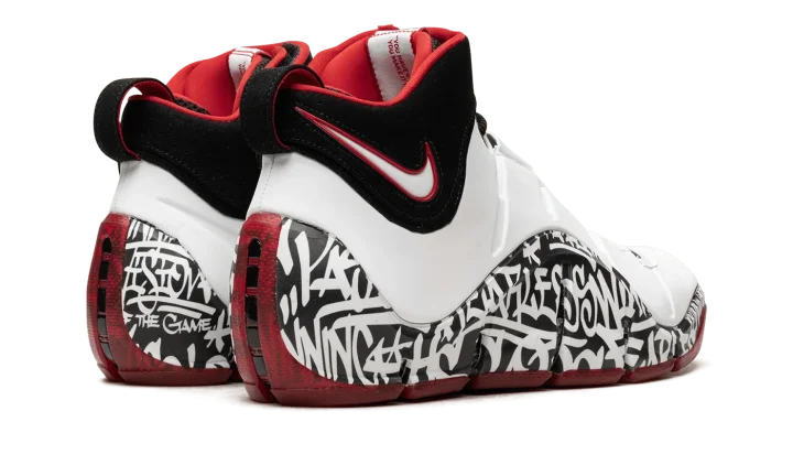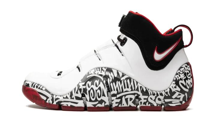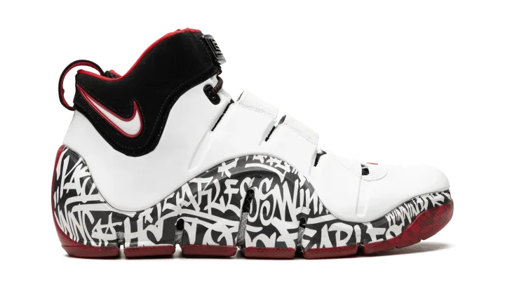 The Nike LeBron 4 "Graffiti" is the modern re-release of LeBron James's fourth signature shoe that was originally made available in limited quantities in 2006. Rumored to be limited to just 250 pairs and released exclusively at a pop-up shop in New York City in '06, the Nike LeBron 4 "Graffiti" is one of the most sought after releases in the Nike LeBron line. Here, the sneaker is brought back as a retro release for the first time, and fortunately, this time around there are more pairs available. The colorway has a white leather upper with a graffiti-tagged wavy mudguard. Classic Nike LeBron branding is seen on the tongue while a white and red Swoosh is found on the collar. Release date: September 6, 2023