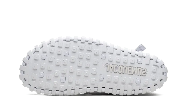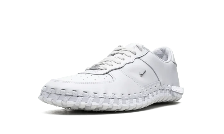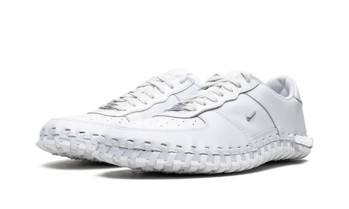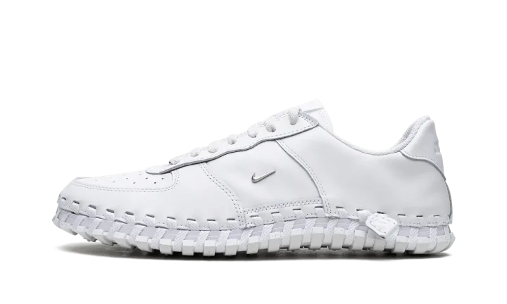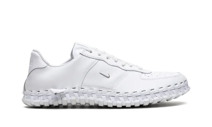 The Jacquemus x Nike J Force 1 Low "White" is a collaboration by the French fashion company that puts a contemporary twist on the legacy sneaker. Not only is the J Force 1 Low inspired by Jacquemus's signature design ethos, the shoe's design draws favorably from the Nike ACG Terra. The unique design features a monochromatic white leather upper with exposed hand-woven overlays that ties the leather upper to the rubber sole. A small Metallic Silver Swoosh appears on the sides. A "J Force 1" logo lands on the tongue tag and a debossed "Jacquemus" logo appears on the heel. The shoe is completed with a waffle outsole. Release date: June 21, 2023