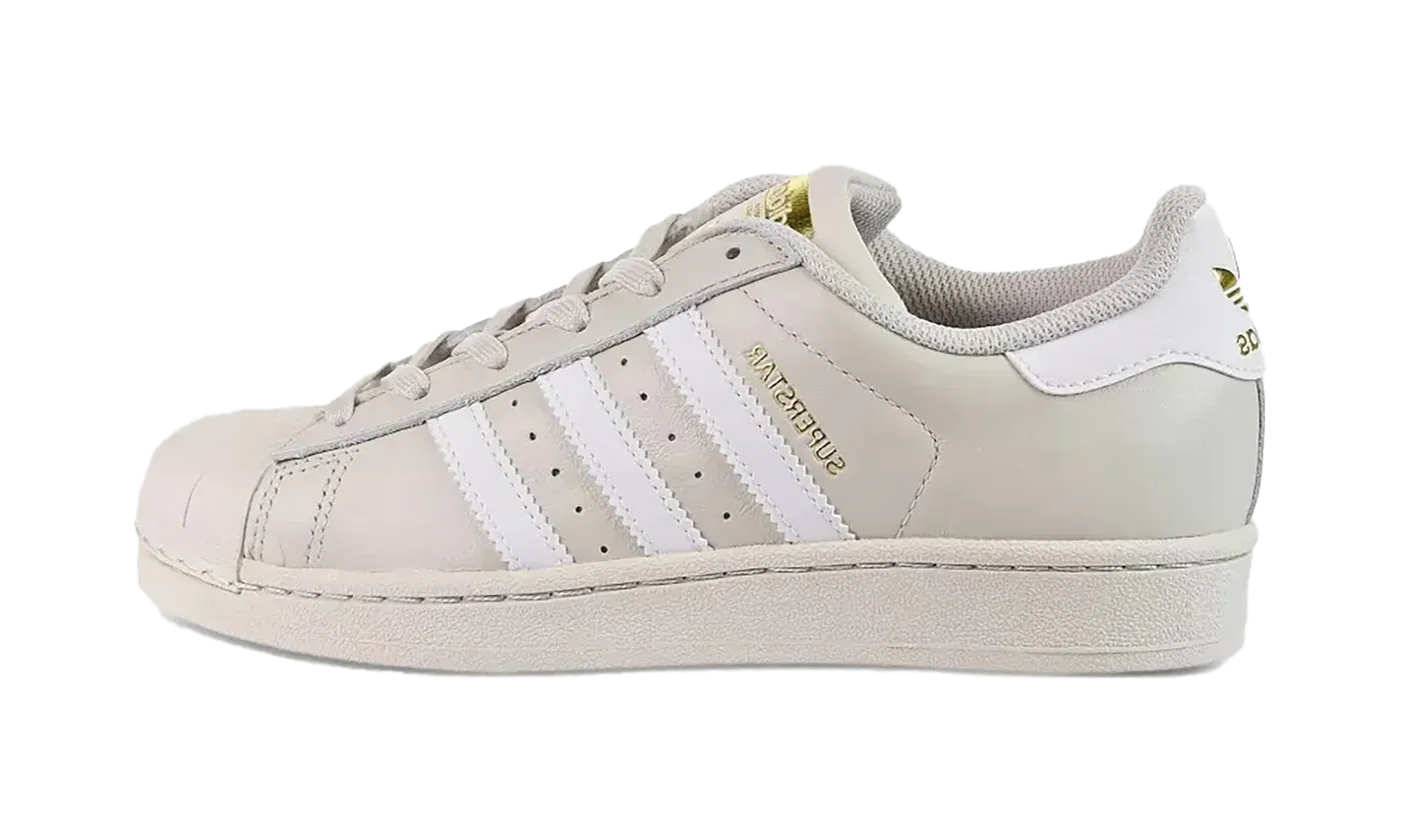The Superstar GS 'Talc White' shoe features a classic design in a versatile talc white colorway, making it a timeless addition to any sneaker collection.