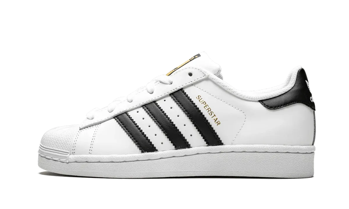 The Superstar J 'White' shoe features a classic design in a clean white colorway, making it a versatile and timeless addition to any sneaker collection.