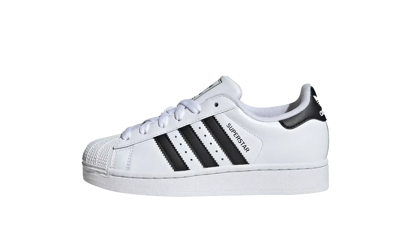 The Superstar II GS 'White Black' shoe features a classic two-tone design, offering a versatile and timeless addition to any sneaker collection.