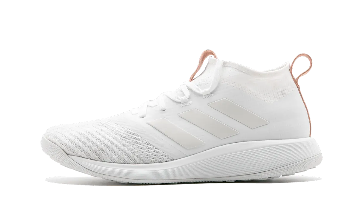Ronnie Fieg's brand/retail space KITH sponsors two soccer clubs: the KITH Cobras (located in New York City) and the KITH Flamingos (located in Miami). The teams inspired the KITH x adidas Soccer Collection, which includes six new KITH collaborative models. Enter the innovative ACE 17.1 Pure Control Turf Trainer, featuring a pristine white colorway and accents that draw inspiration from the Flamingos' tropical locale. Here we see the ACE 17+ upper reimagined on top of a cushioned EVA turf midsole unit. Hits of premium suede coat the tongue and heel tabs in a pink hue, featuring proper KITH and adidas co-branding. Three Stripes appear on an overlay that covers the mid-foot and heel.