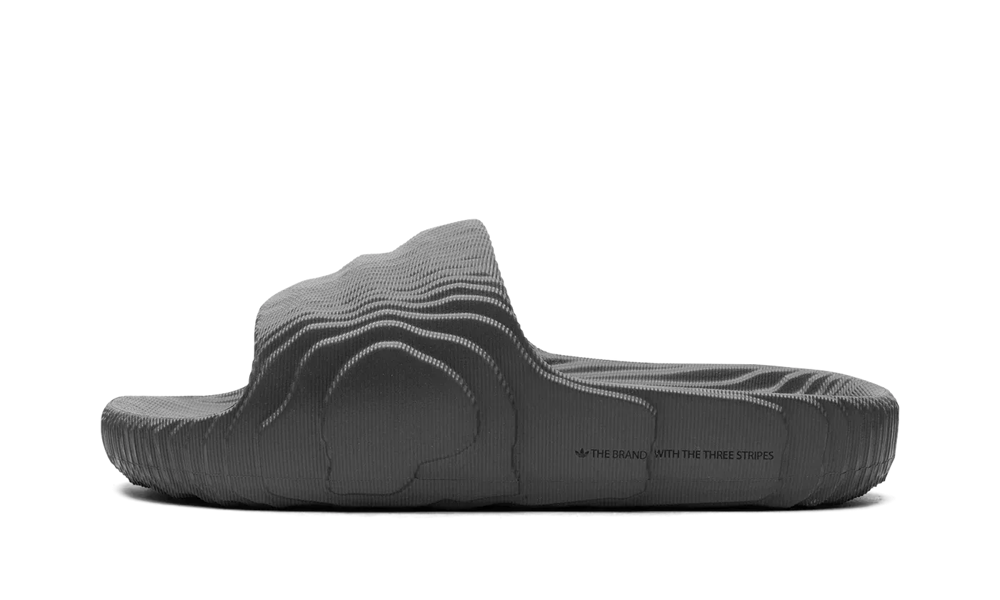 The adidas Adilette Slide 22 "Grey" is a colorway of the comfortable slip-on sandal that's made from sustainably sourced materials. Reminiscent of the adidas Yeezy Slide, the Adilette 22 has a contemporary vibe with wavy lines inspired by 3D topography. The sandal is made from lightweight EVA foam that contains up to 25% plant-based ingredients derived from sugarcane. The "Grey" colorway features a monochromatic grey appearance with "The Brand With the Three Stripes" branding on the lateral side of the footbed.
