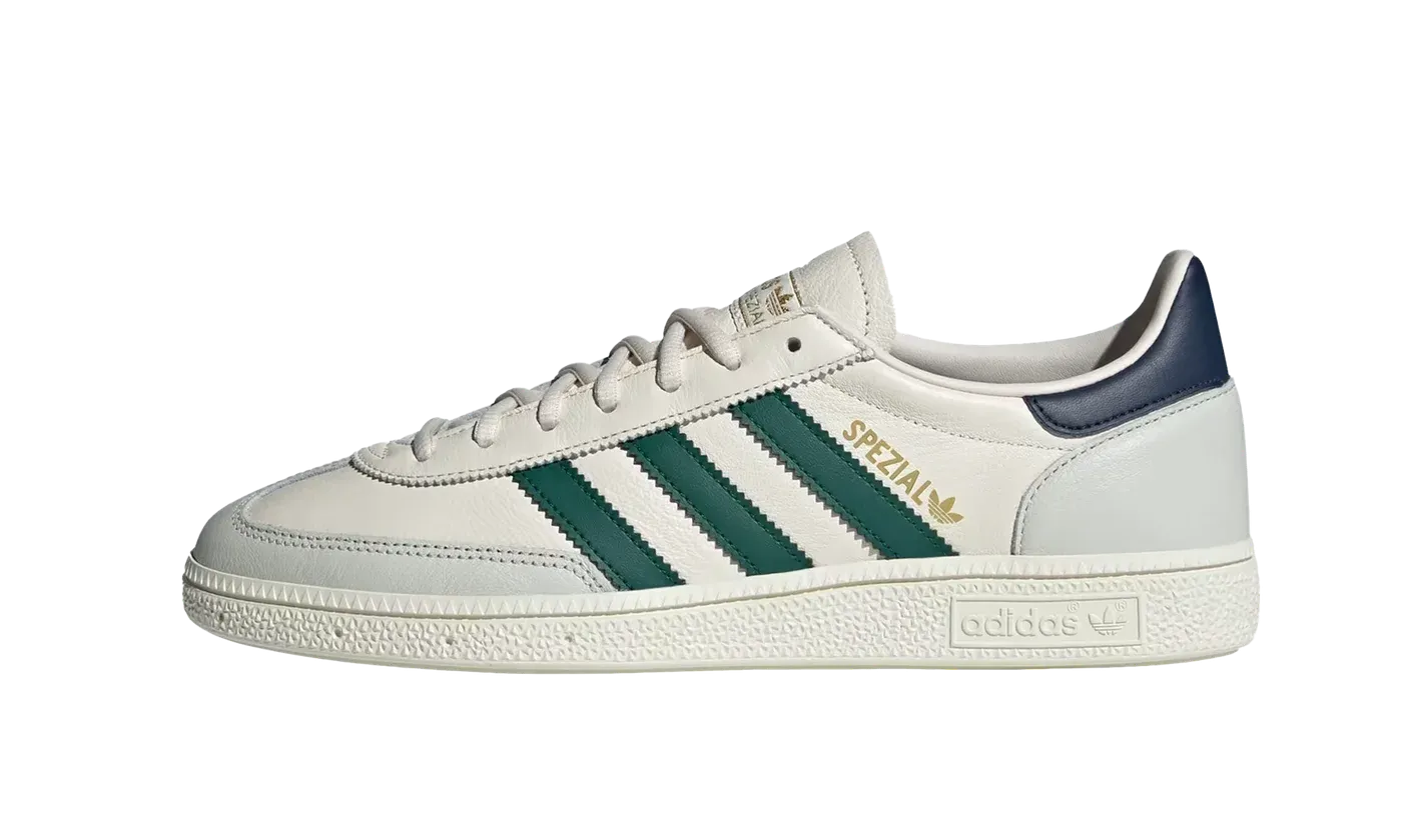 Step into a true classic with the Handball Spezial "Chalk White Collegiate Green." Originally built for the indoor courts of 1979, this iconic silhouette is now a legendary streetwear essential. The premium suede and leather upper in Chalk White is perfectly contrasted by the vibrant Collegiate Green 3-Stripes. Complete with the signature low-profile design and durable gum rubber outsole, these trainers deliver vintage charm and all-day comfort, ready for your next low-key adventure.