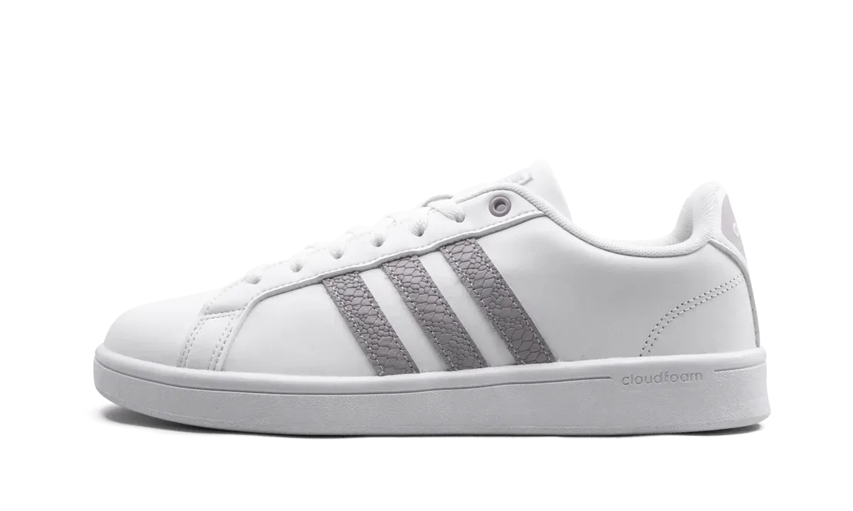 The adidas CF Advantage is yet another classic archival design that feels every bit as fresh and exciting today as it did when it debuted in the '70s. Crisp white leather covers the upper with white stitching on the heel and forefoot providing a subtle contrasting. Reptilian-like Three Stripes branding is located on the mid-panel of the shoe while a lavender leather heel cap contrasts the back of the shoe. The tennis-inspired look is finished off with a cloudfoam midsole that provides a cushioned ride.