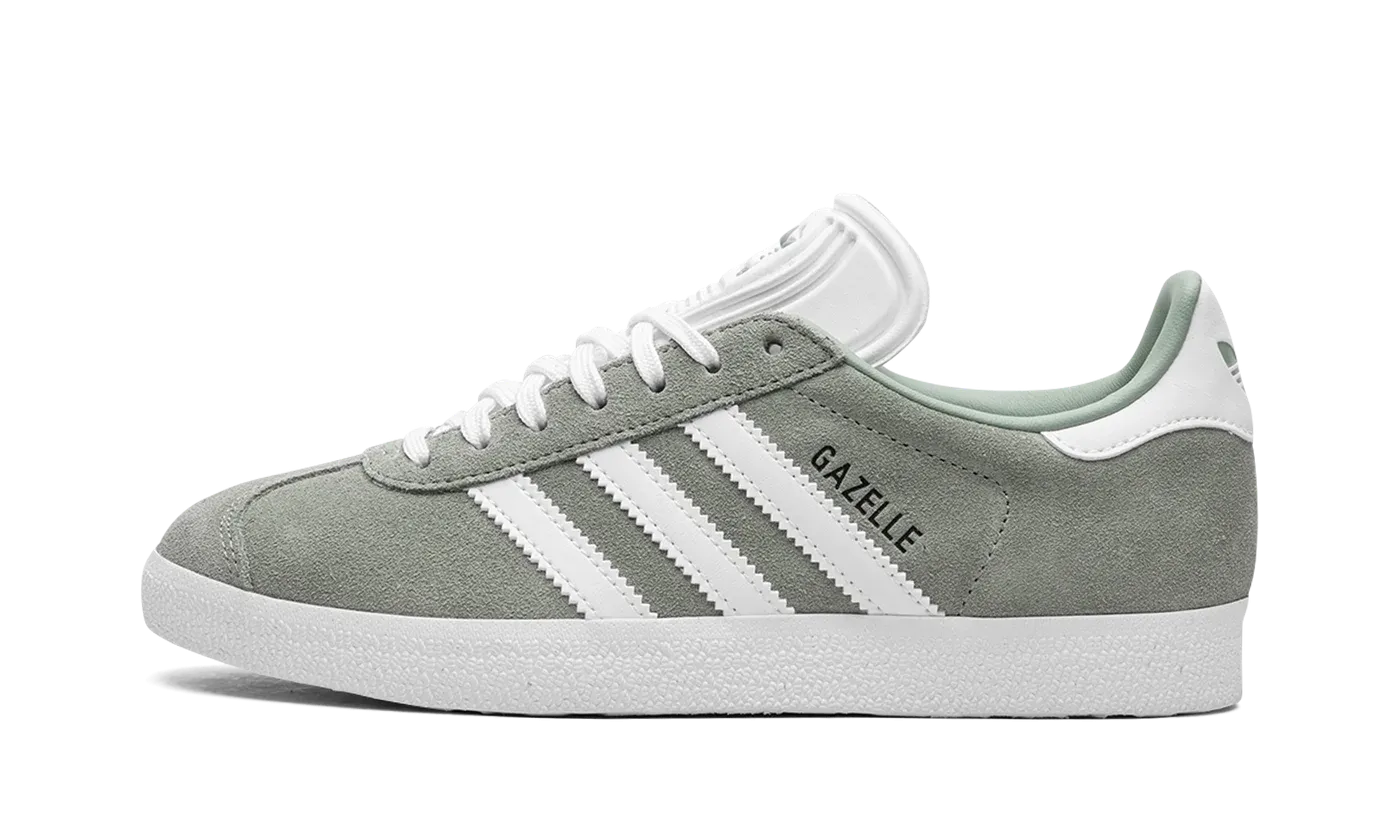 Women's adidas Gazelle "Silver Green/White" is a women's sizing edition of the retro sneaker in a highly wearable colorway. Designed for everyday wear, the adidas Gazelle in "Silver Green/White" is complete with a Silver Green suede upper with a reinforced suede overlay on the toe. White leather Three Stripes branding is found on either side of the shoe and a "Gazelle" logo appears on the lateral side of the midfoot. Both adidas Trefoil logos on the white leather heel tab and white tongue are designed in a Silver Green hue. A white rubber sole completes the look.