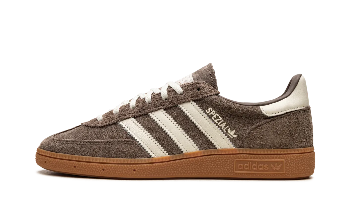 The Women's adidas Handball Spezial "Earth Strada/Gum" is a women's-exclusive colorway of the lifestyle shoe with an earth tone color scheme. The upper is complete with an Earth Strada, or brown, suede construction and contrasted with Cream leather Three Stripes branding on the sides. Cream "Spezial" and adidas Trefoil logos appear on the lateral side of the mid-panel, while more cream leather can be found on the heel tab. Underfoot, a gum sole completes the look. Release date: November 10, 2023