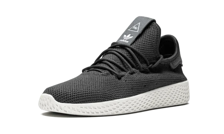 The Pharrell Williams x adidas Tennis Hu reimagines the classic tennis shoe with a modern sock-like knit upper. This iteration boasts dyed Primeknit upper that allows air to flow in. Set in tonal black, the only accenting is done on the white branding. The upper sits atop a textured EVA midsole, and the shoe boasts the traditional heel tab found on Pharrell models.