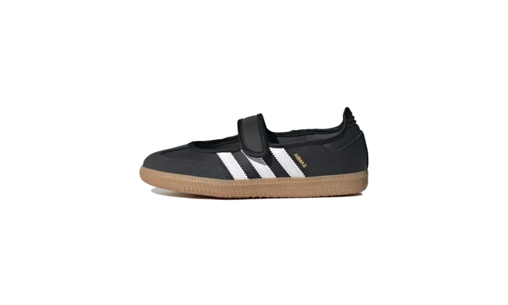 Step into a fresh take on a classic with the Adidas Samba Jane GS "Black / Gum". This grade school sneaker re-imagines the Samba silhouette with an elevated design. Featuring a clean black upper with a subtle logo and a gum sole, it delivers a comfortable fit and a versatile look that’s perfect for making a stylish statement every day.Black / Gum