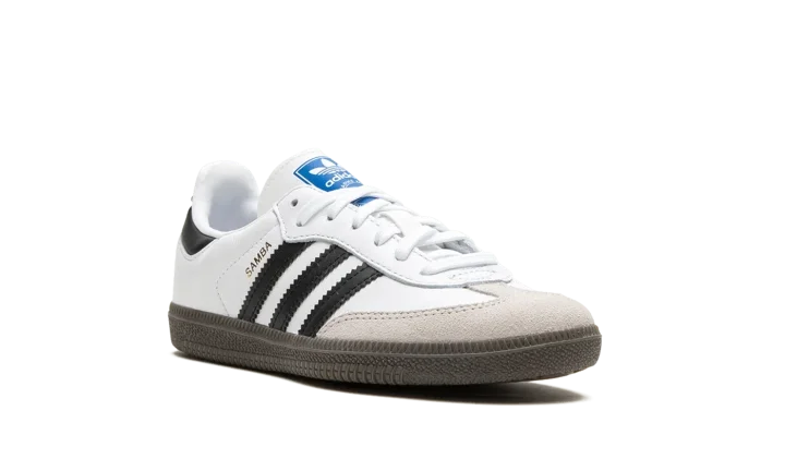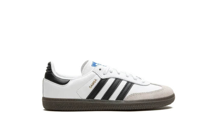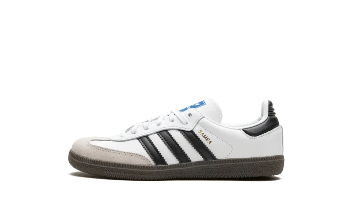 The adidas Samba OG GS “White/Black" is the youth sizing of the timeless, original colorway of the retro indoor soccer and lifestyle shoe. The Samba has enjoyed a resurgence in popularity in recent years, as the shoe’s classic design has come to be appreciated by more and more people looking for a casual shoe that can be worn with anything. The Samba’s “White/Black” colorway features a white leather construction with natural white suede overlays on the toe and forefoot. Black Three Stripes branding is found on the sides. “Samba” detailing appears in gold foil lettering on the lateral side of the shoe and an “adidas Samba” patch can be found on the tongue. A brown rubber sole completes the look.White Black