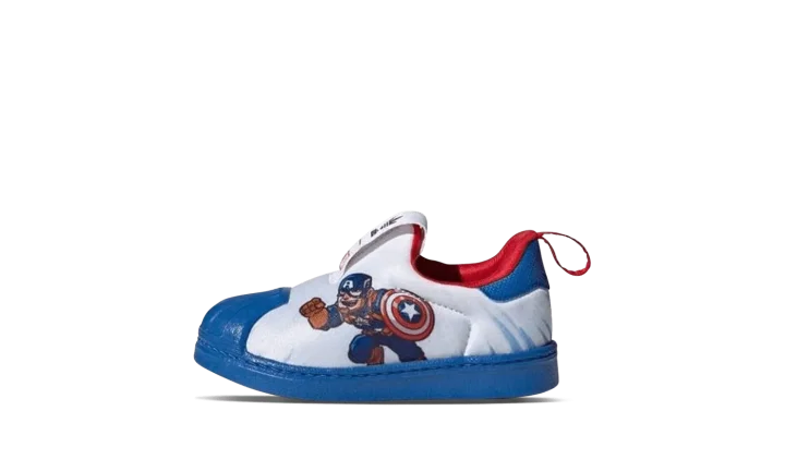 The Superstar 360 TD 'Marvel - Captain America' shoe features a design inspired by the iconic Marvel character Captain America, blending classic Adidas Superstar style with unique superhero details.Marvel - Captain America